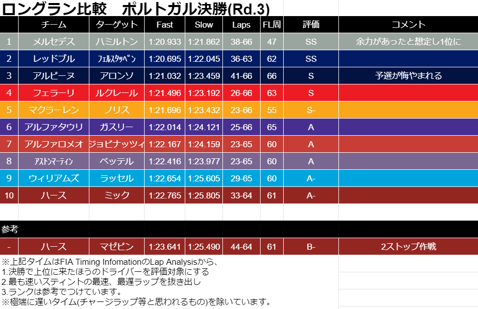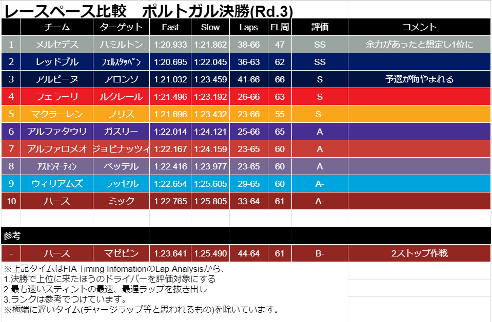 レースペース比較 ポルトガルGP決勝(2021Rd.3)