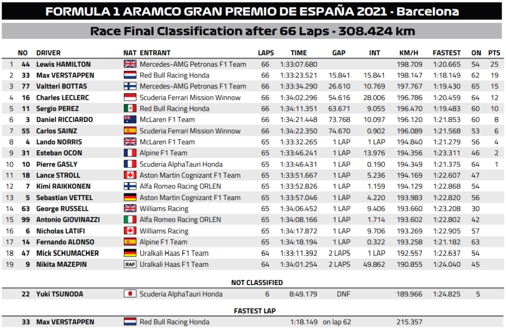 スペインGP決勝の勢力図(まとめ)