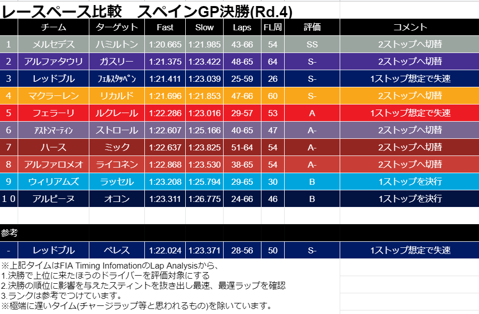 レースペースを改めてみてみると、2ストップのチームが上位にランクインしています。