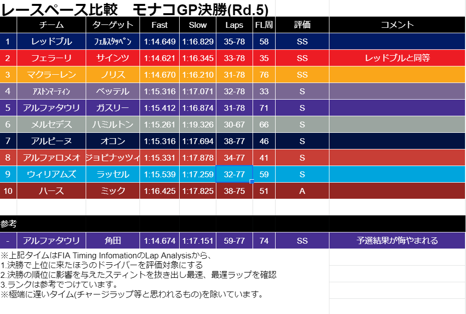 抜けないモナコを最大限活かしたのがガスリーで、抜けないモナコに阻まれ続けたのが角田でした。