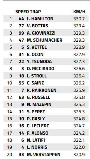 一方でレッドブルはフェルスタッペンが最下位とダウンフォース重視にしており、速度差は10kmあります。