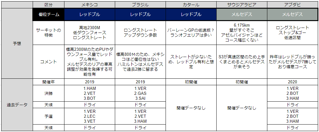 ・また、バーレーンGPよりストレートが少ないコースレイアウトであることからレッドブルが有利になるのではと想定。
