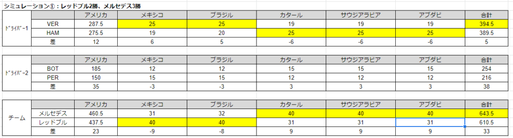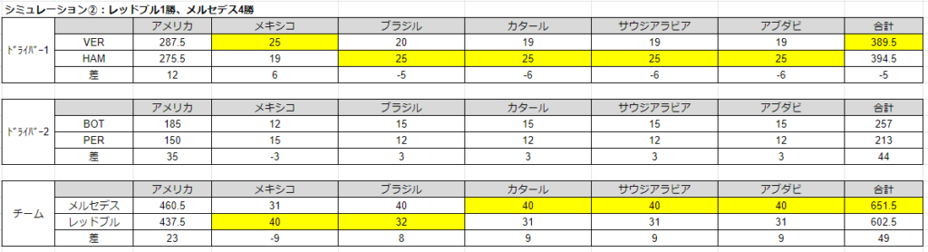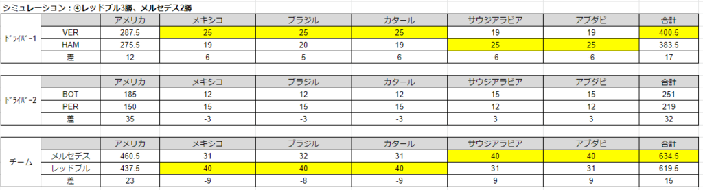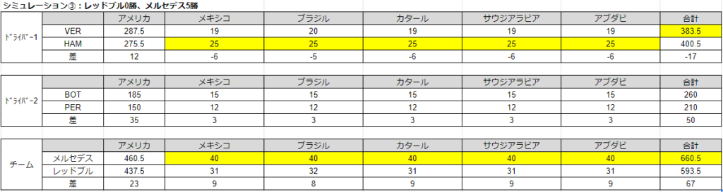 シミュレーション③:レッドブル0勝、メルセデス5勝