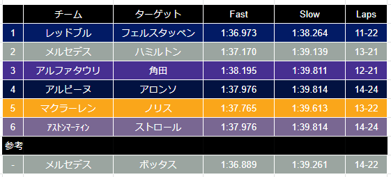 それでは、決勝直前の各チームのロングラン分析を行いたいと思います。!(今シーズン初レース)