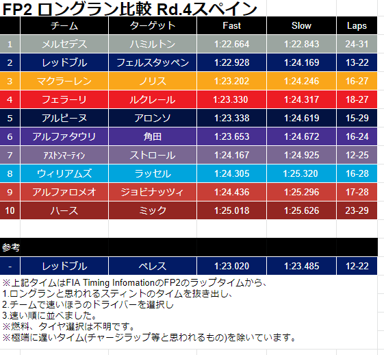 ・特にタイヤのデグラデーションではフェラーリより有利に見え、スティント後半のタイムに注目したい。