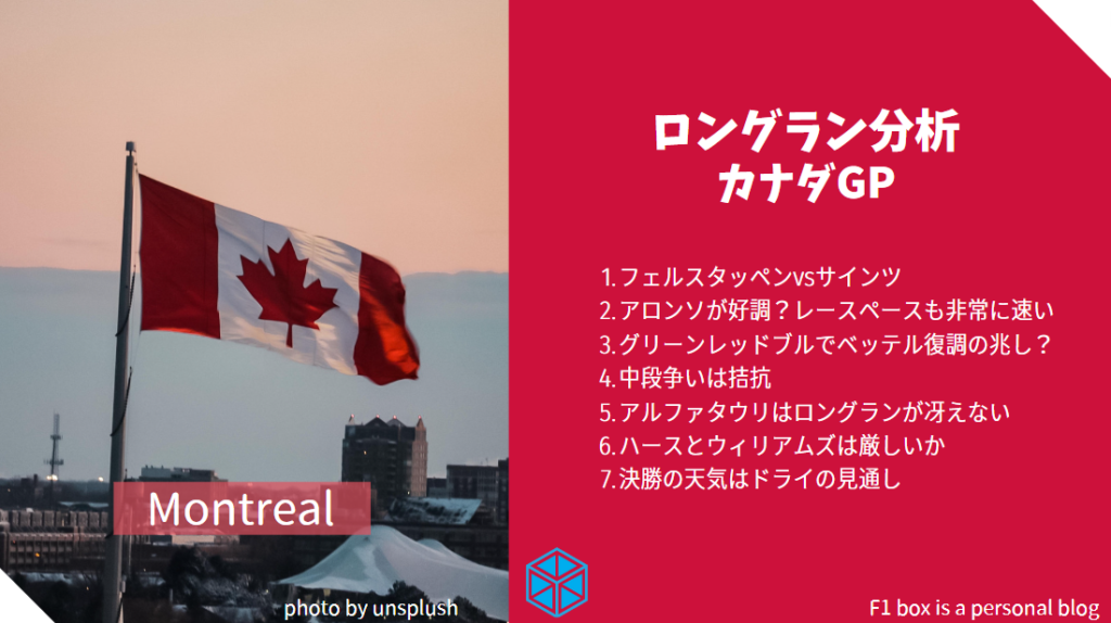- カナダは波乱が多いので、SCのタイミングや雨などで上位を狙える可能性がある。