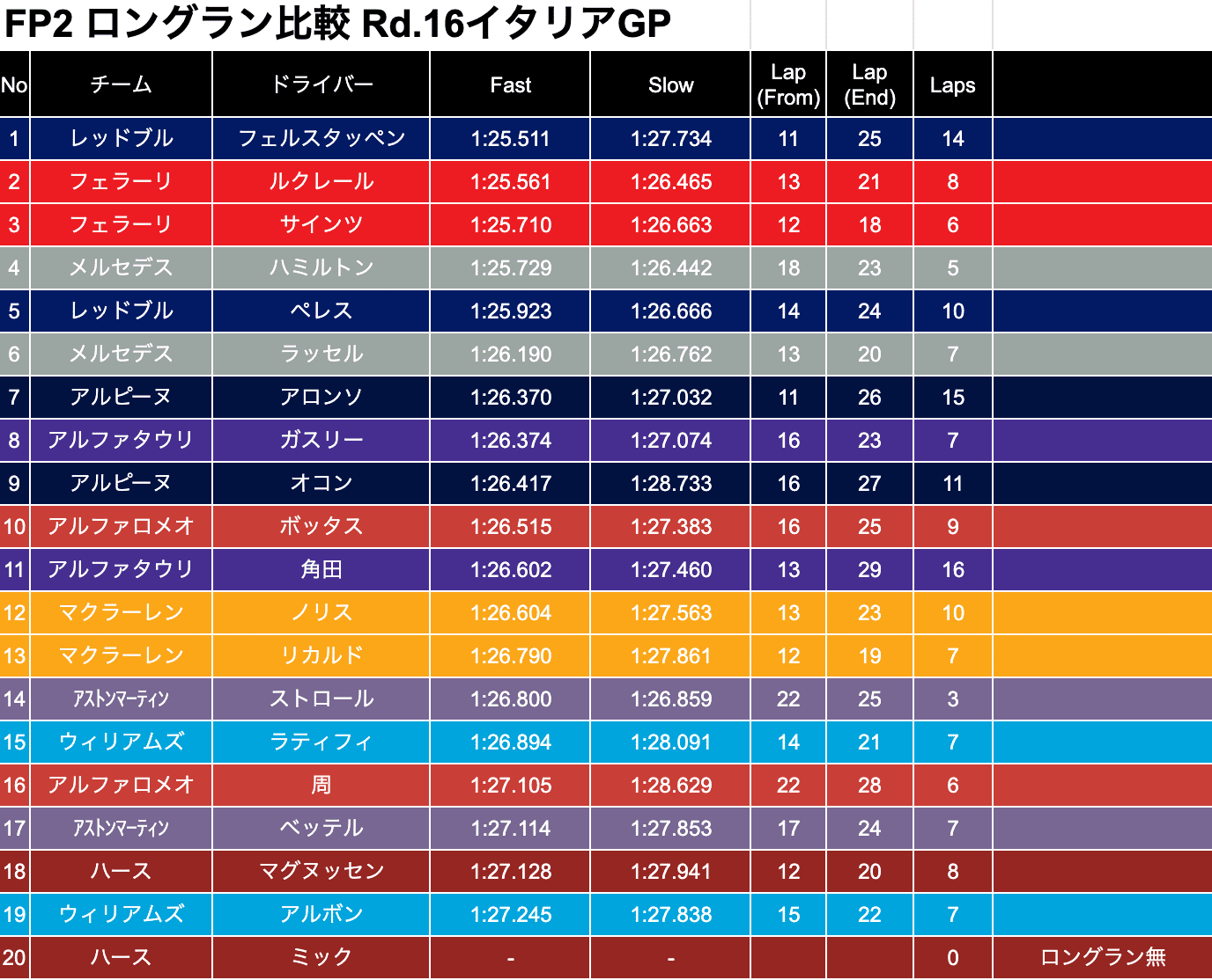 イタリアGPについて、ロングラン分析をしていきたいと思います。