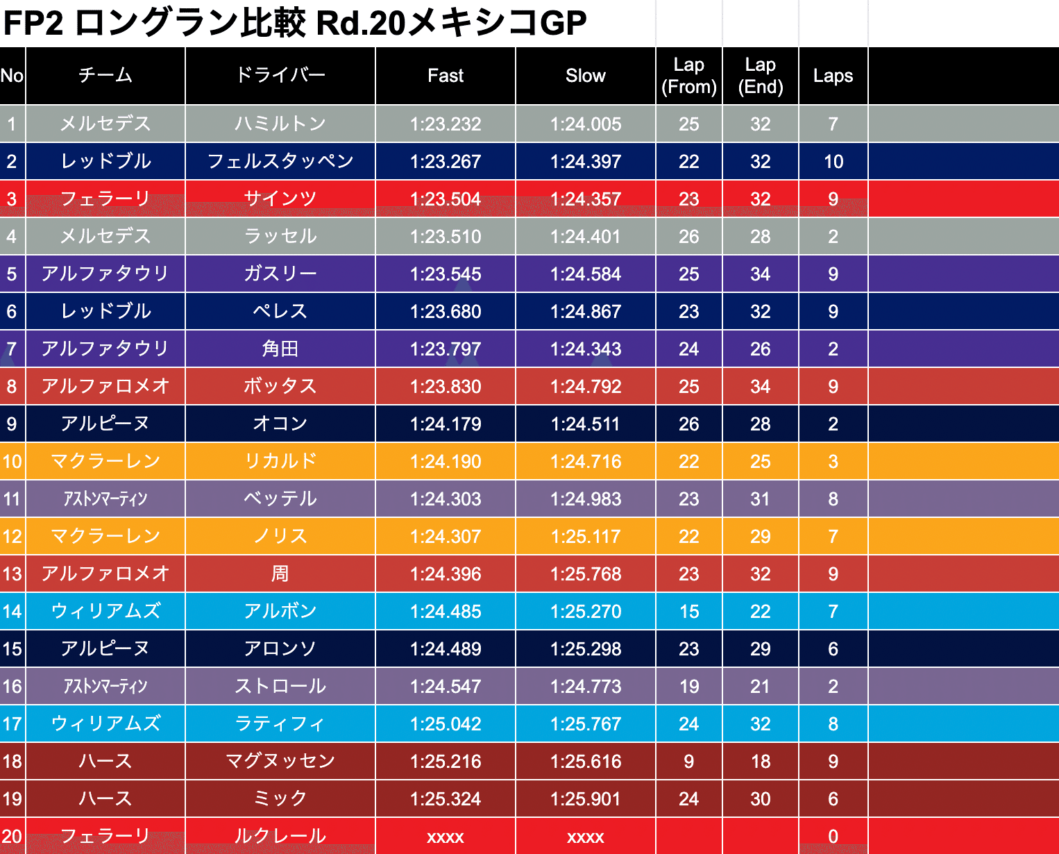 - ロングランはメルセデスのハミルトンがフェルスタッペンをわずかに上回りトップタイム